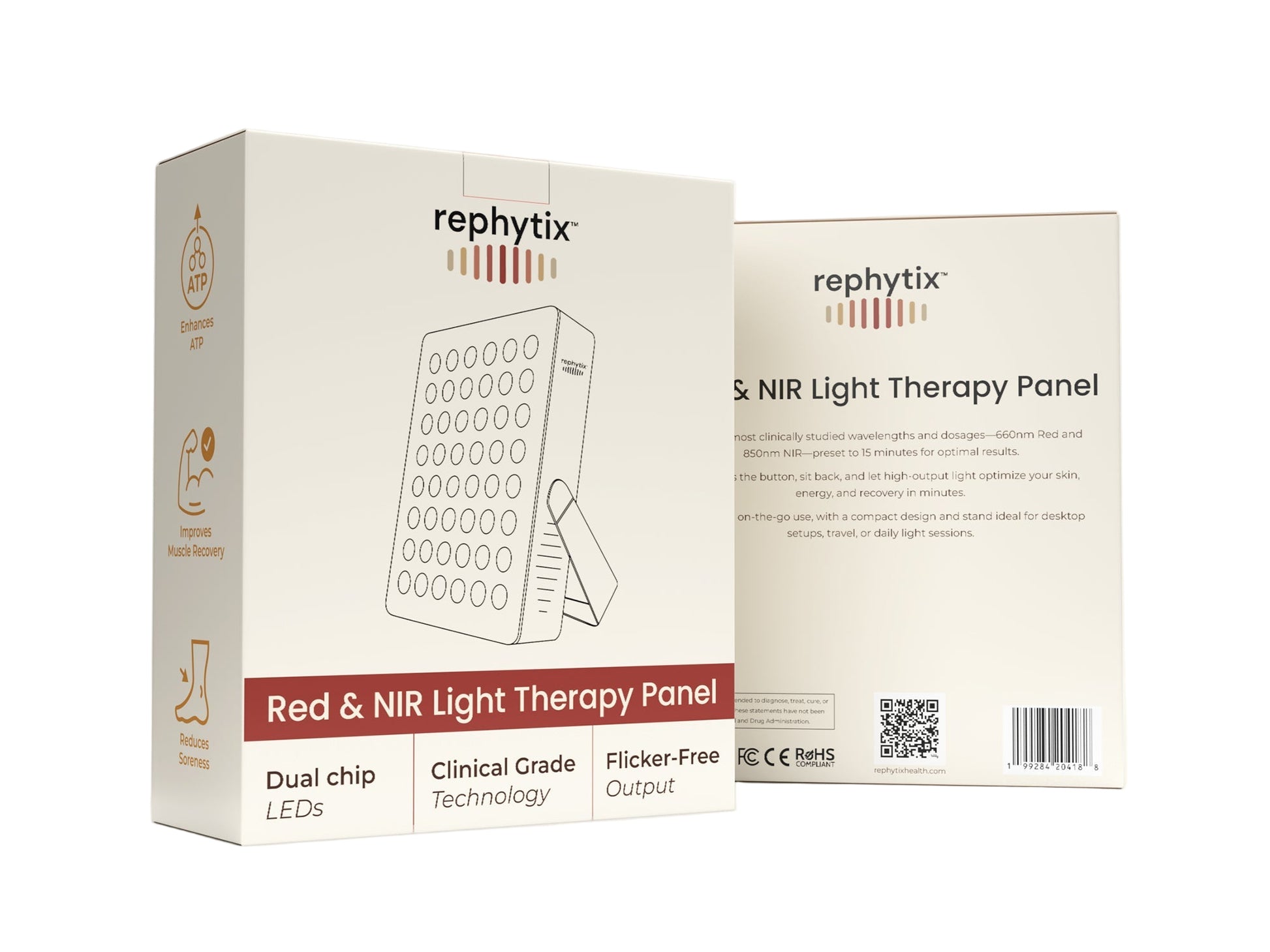 The Rephytix Core 1 delivers clinical-grade red (660nm) and near-infrared (850nm) light using dual-chip LEDs, the two most studied wavelengths in red light therapy. Designed for portability and daily use, it features an adjustable stand, simple one-click 15-minute sessions, and is ideal for desks, nightstands, or travel. Support collagen, recovery, and cellular energy in just minutes a day.